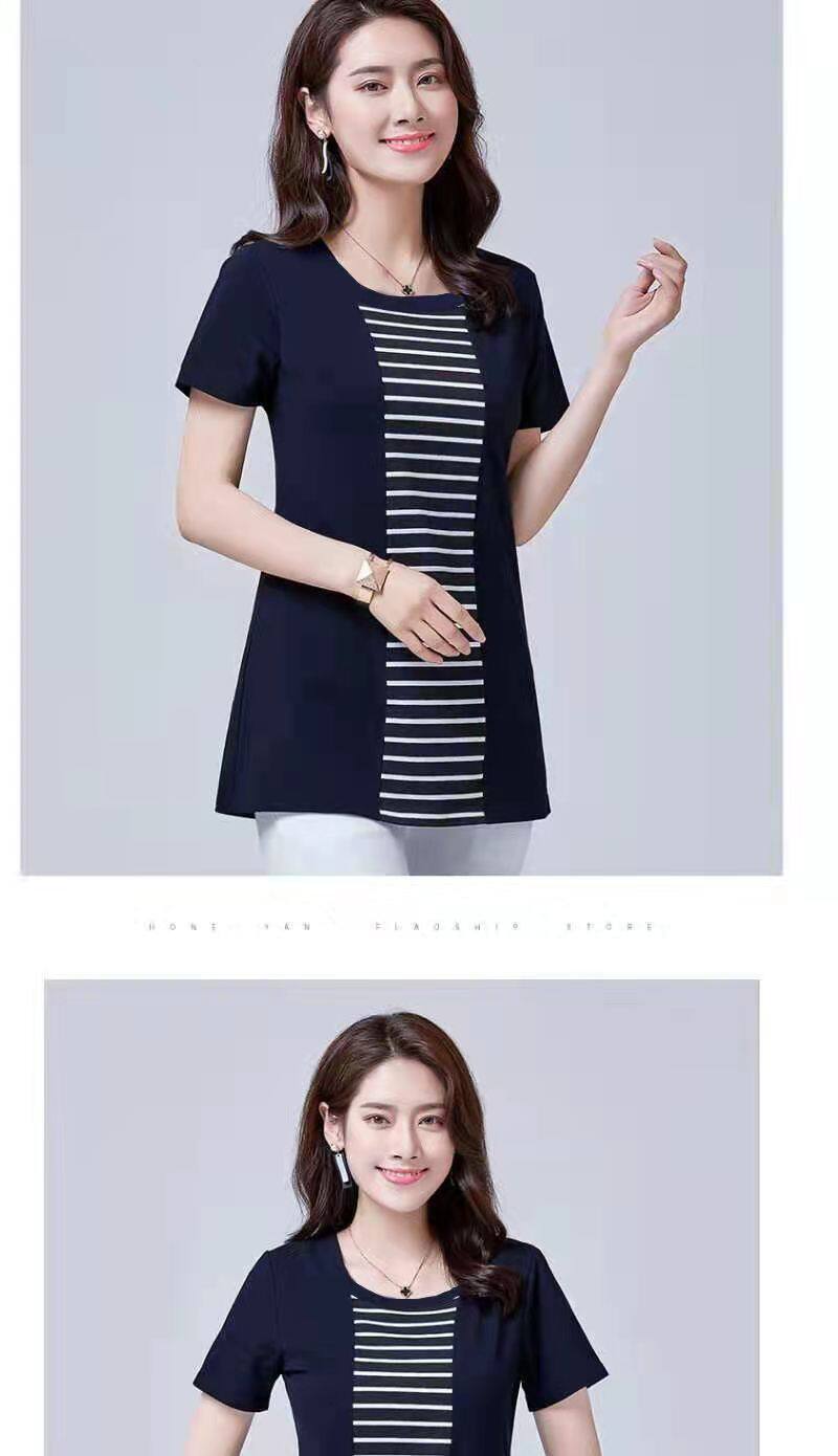 100KG胖女可穿2022新款韩式条纹长袖T恤女式短袖加大码盖腹圆领时尚T恤连衣裙优雅衬衫女式T恤
